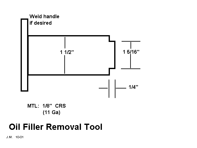 The sheet metal oil filler is attached to the cast generator stand with a threaded "nut" (actually, more like a bolt). The nut has a slot in it to accept a removal tool.